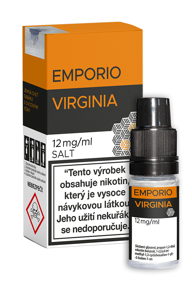 Vychutnejte si jednu z nejpopulárnějších tabákových příchutí na světě v podání českého výrobce Imperia Biosence. Emporio SALT Virginia přináší jemnou, lehce nasládlou a sluncem provoněnou chuť světlého tabáku Virginia, která je ideální pro celodenní vaping (all-day vape).