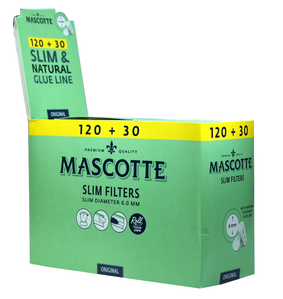 Mascotte Slim Filtry 120ks+30ks jsou slimkové vatové filtry, jedny z nejprodávanějších cigaretových filtrů u nás.