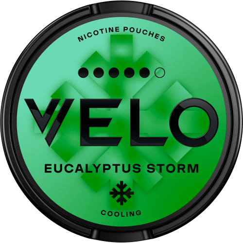 VELO Eucalyptus Storm 15,6mg jsou nikotinové sáčky se silnou a svěží směsí chutí eukalyptu, máty peprné a výrazného kafrového aroma, která zanechává intenzivní chladivý pocit.