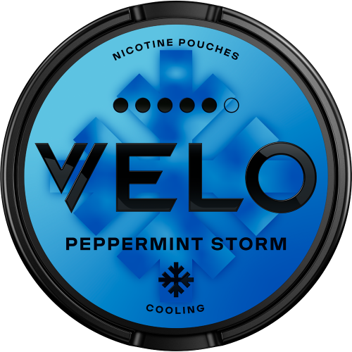 VELO Peppermint Storm 15,6mg jsou nikotinové sáčky s výraznou a svěží chutí máty peprné.
